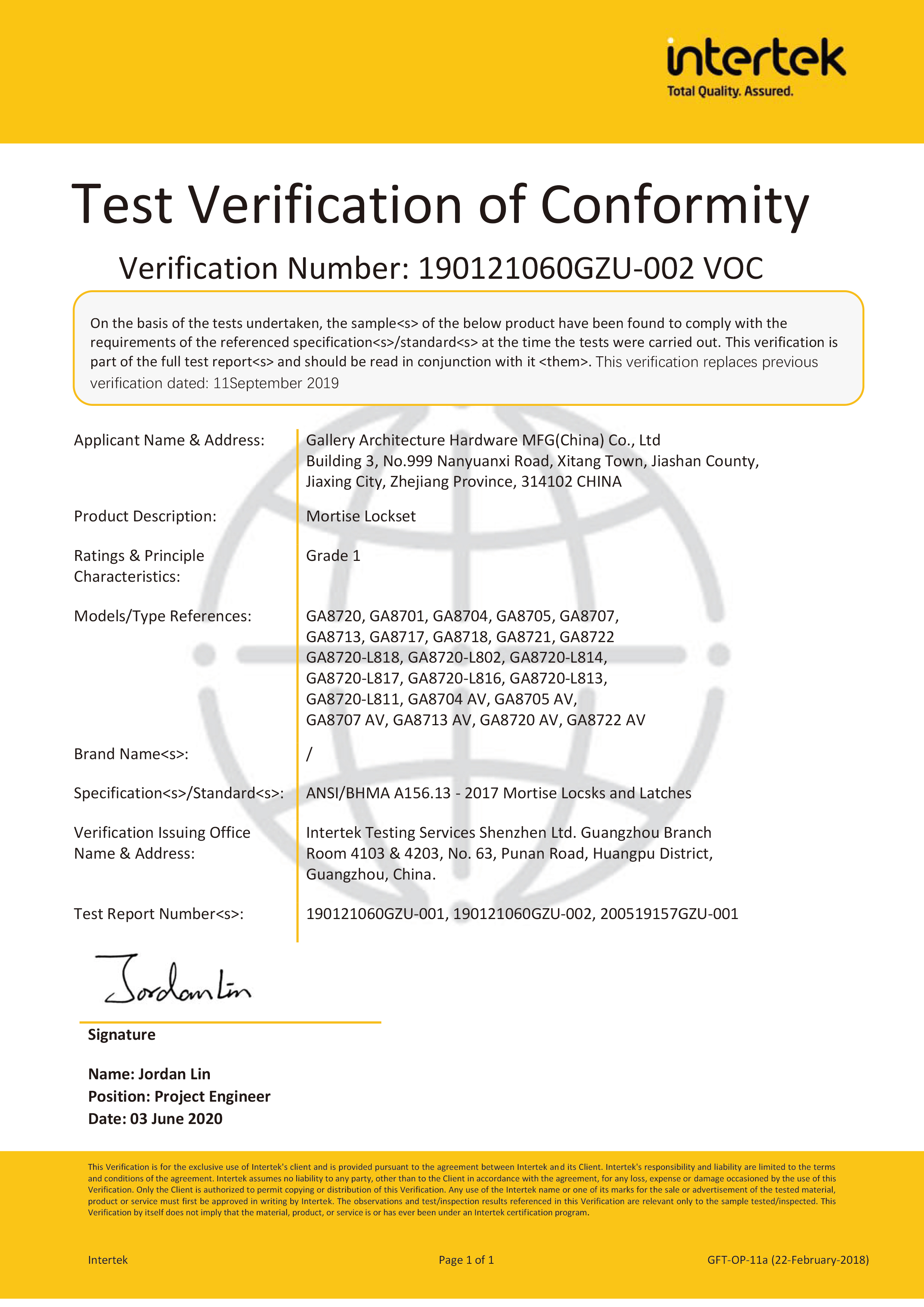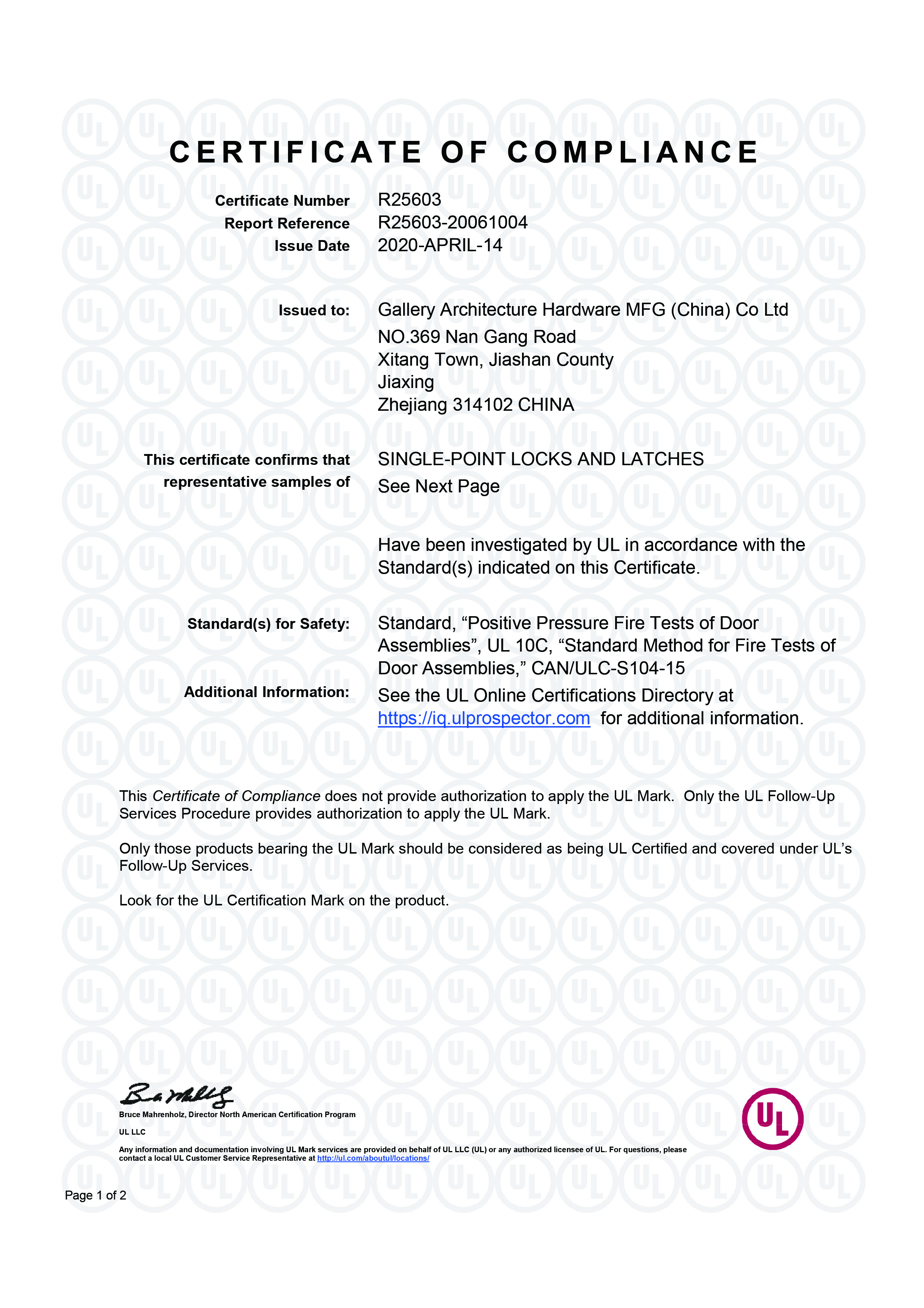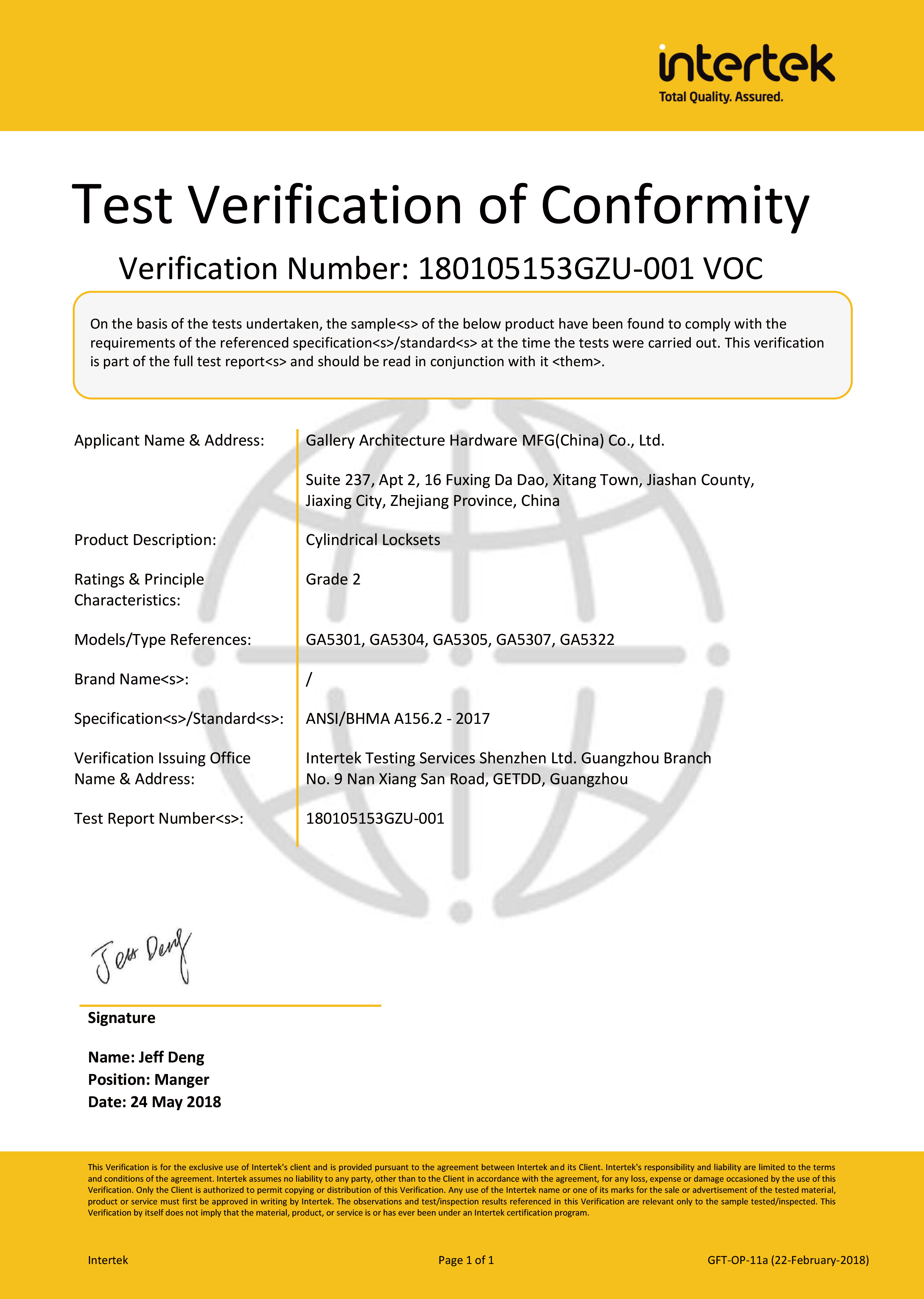 浙江堅迪五金制造有限公司始建于 1995 年。自 2003 開始,公司致力于高標準商業(yè)鎖的研發(fā)工作,并于 2006 及 2007 年,8700 插芯鎖系列獲得美國國家標準 ANSI A 156.13-2005 一級、ANSI A 156.2-2003 二級和美國 UL 10C3 小時防火測試認證。自 1998 年以來,公司不斷提升產(chǎn)品和客戶服務品質(zhì),并獲得了 ISO 9001 的認證。